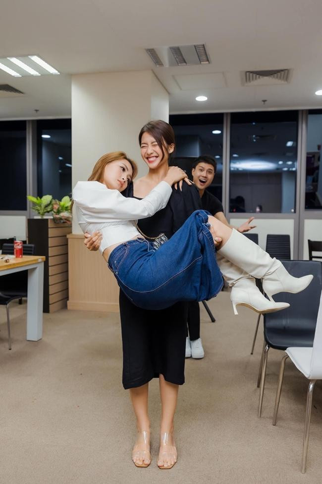 Bên cạnh những tình tiết mới, khán giả yêu thích phim 11 Tháng 5 Ngày còn được một phen thích thú khi Khả Ngân đăng tải ảnh bế bổng "tình địch tin đồn" - MC Huyền Trang (Mù Tạt) trong bữa tiệc mừng đoàn phim đóng máy. Vốn dĩ, Khả Ngân có vóc người nhỏ nhắn, lại gầy nên ai cũng bất ngờ khi cô nàng khỏe tới mức bế gọn Huyền Trang lên.