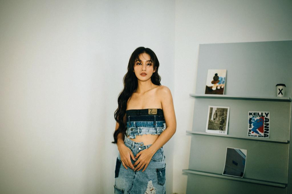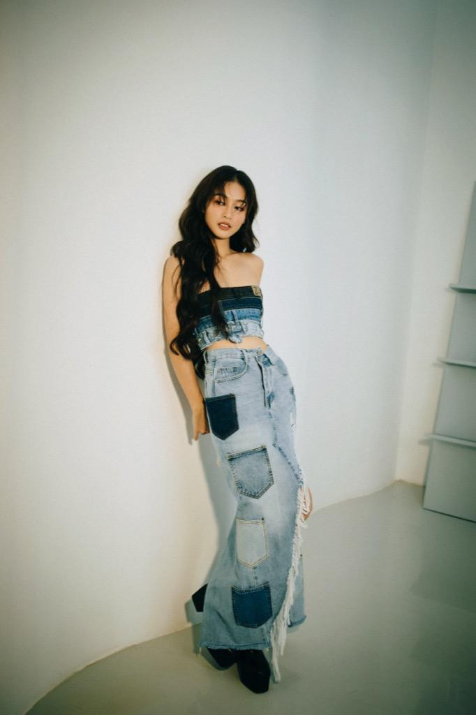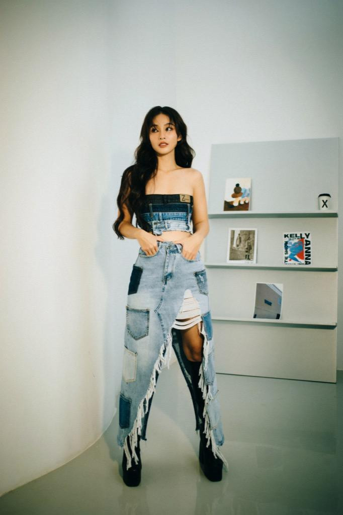 Trong những hình ảnh mới nhất, Khả Ngân lựa chọn trang phục giúp cô khoe được vóc dáng khỏe khoắn, thon gọn. Các mẫu thiết kế như đầm ôm dáng, áo cách điệu từ chất liệu denim được Khả Ngân tận dụng triệt để. Nữ diễn viên thể hiện thần thái sắc lạnh, cuốn hút với nhan sắc ngày càng sắc sảo hơn.