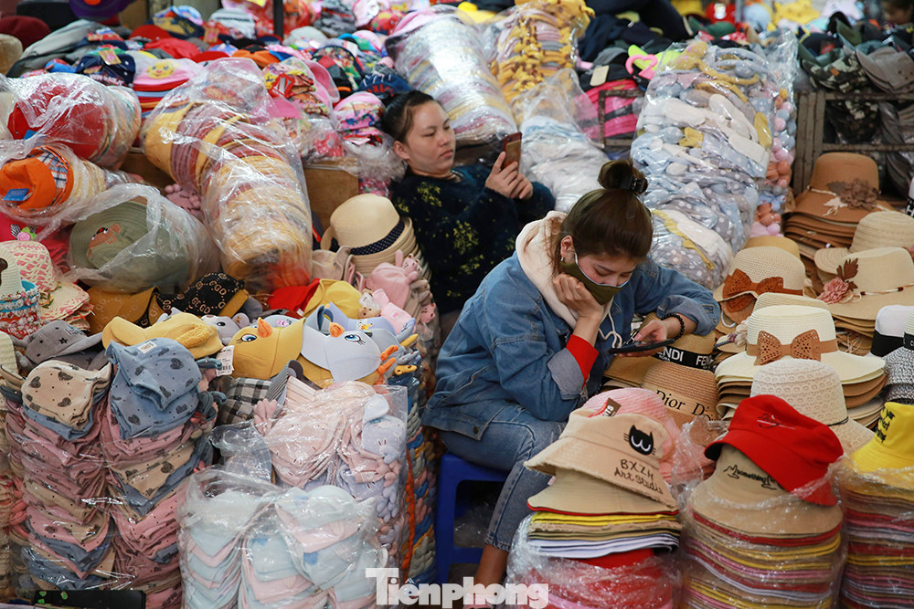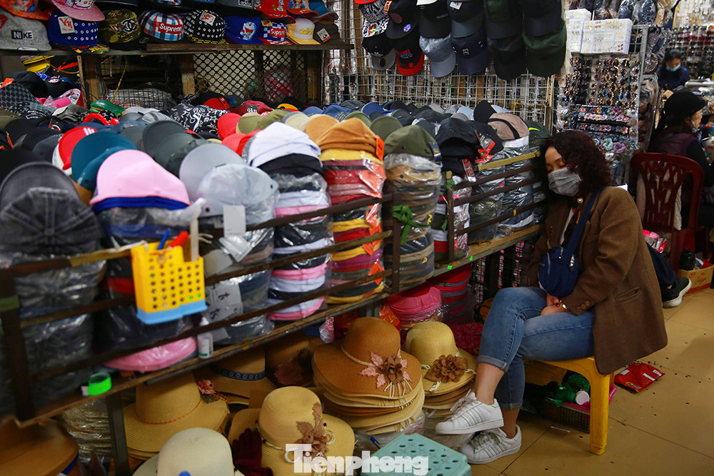 Nhân viên lẫn chủ hàng mũ nón ngồi chơi lướt web, đọc báo