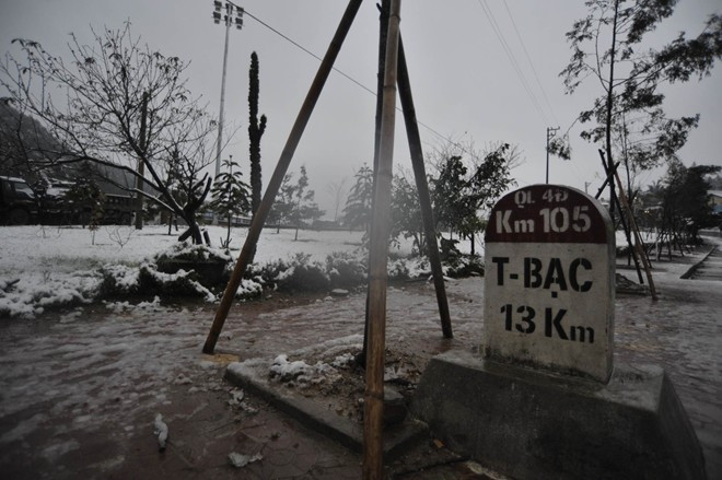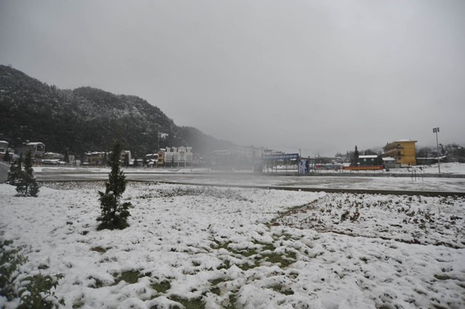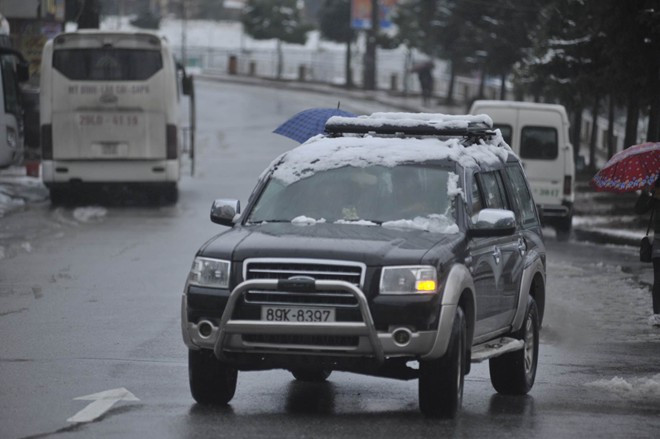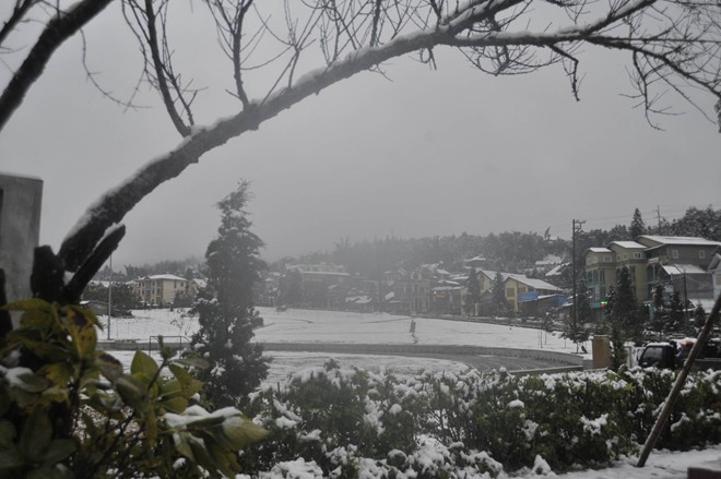Sáng nay, 16/12, tuyết đã phủ kín nhiều con đường ở trung tâm thị trấn Sapa, Lào Cai. Rất đông du khách đổ về Sa Pa để chiêm ngưỡng hiện tượng thiên nhiên hiếm có này.