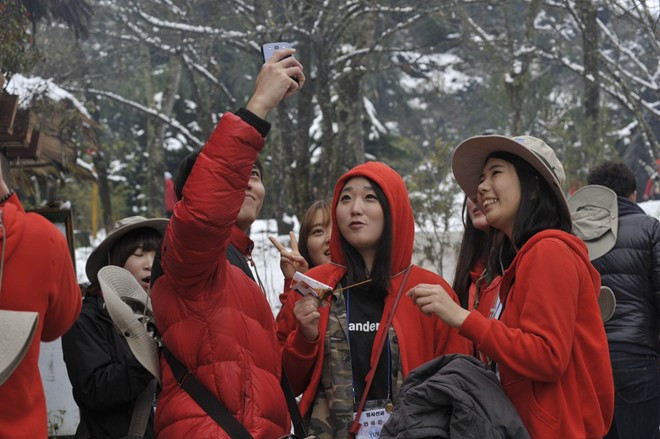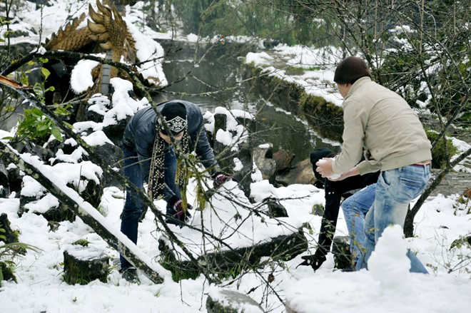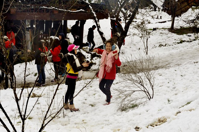 > Tuyết phủ trắng Sapa, khách du lịch thích thú