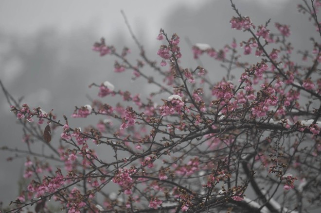 | Một giỏ hoa trên phố Ngũ Chỉ Sơn len lỏi nở trong tuyết |