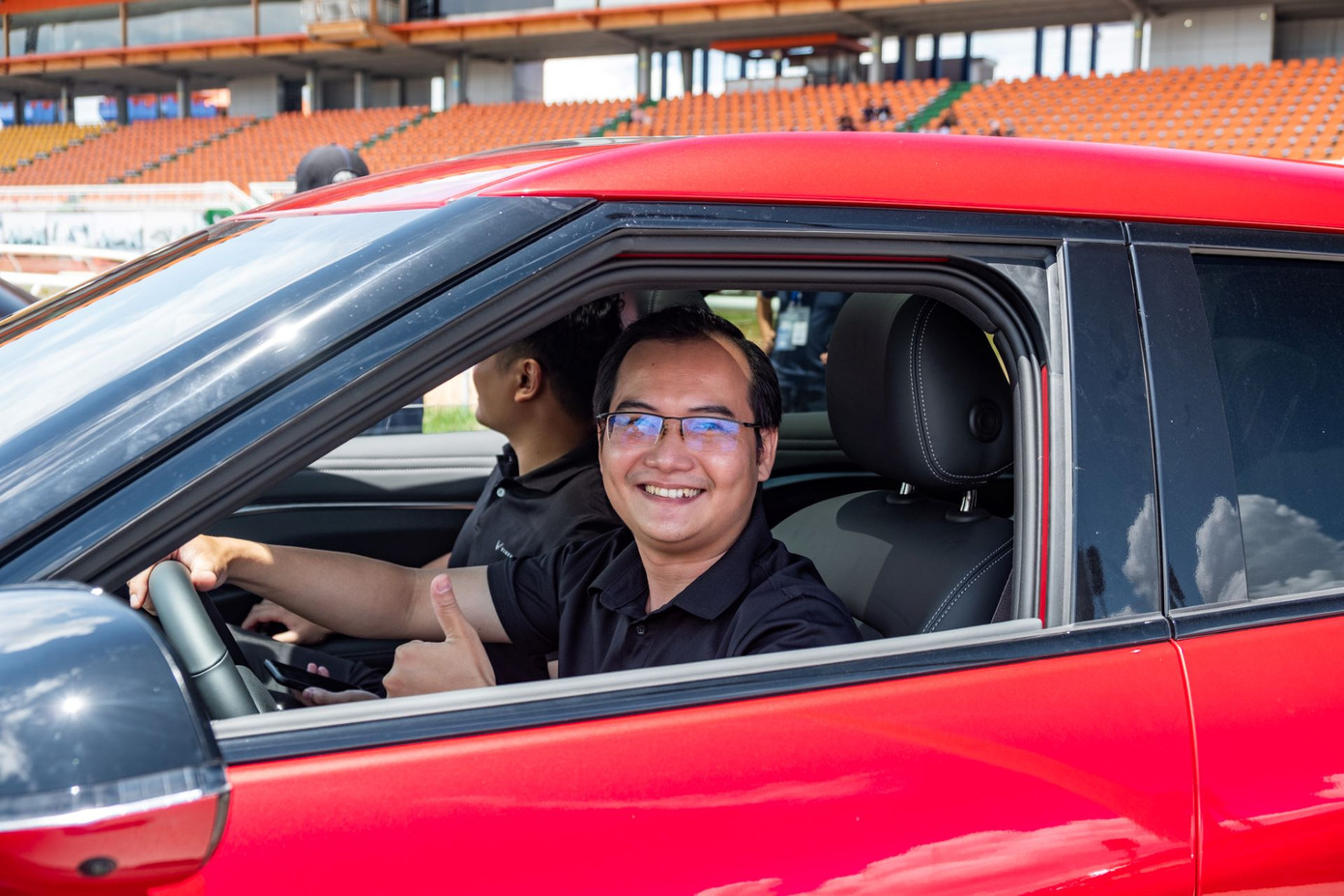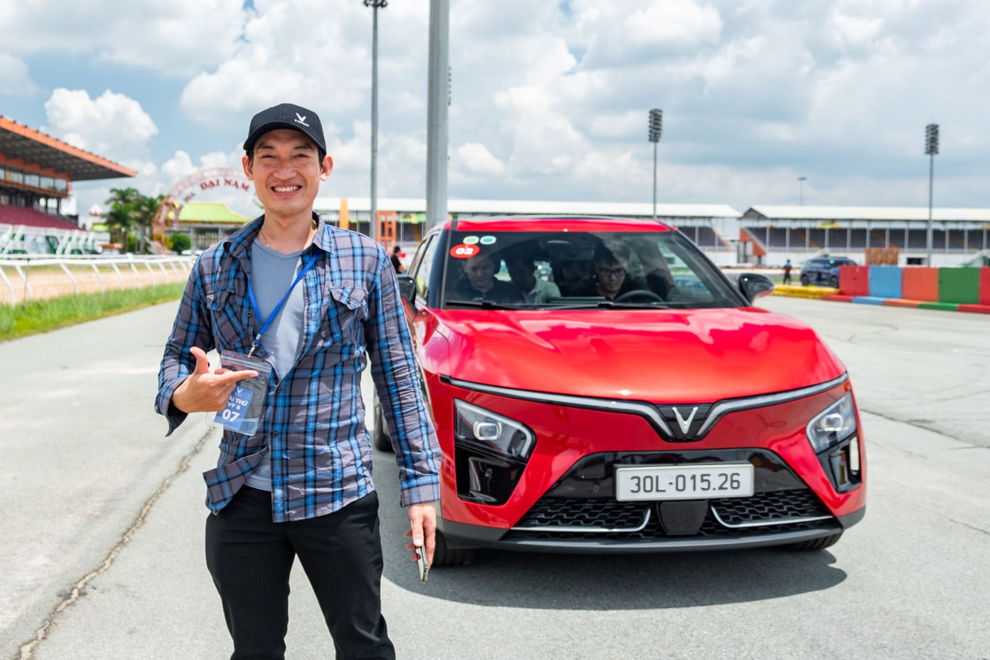 Anh Nguyễn Minh Toại, sống tại TP.HCM, đến sự kiện lái thử của VinFast vì đang cân nhắc đổi từ chiếc xe xăng sang một mẫu xe điện để phục vụ gia đình. Sau khi trực tiếp ngồi sau vô lăng VF 7, anh ngạc nhiên về khả năng bứt tốc của mẫu xe này.