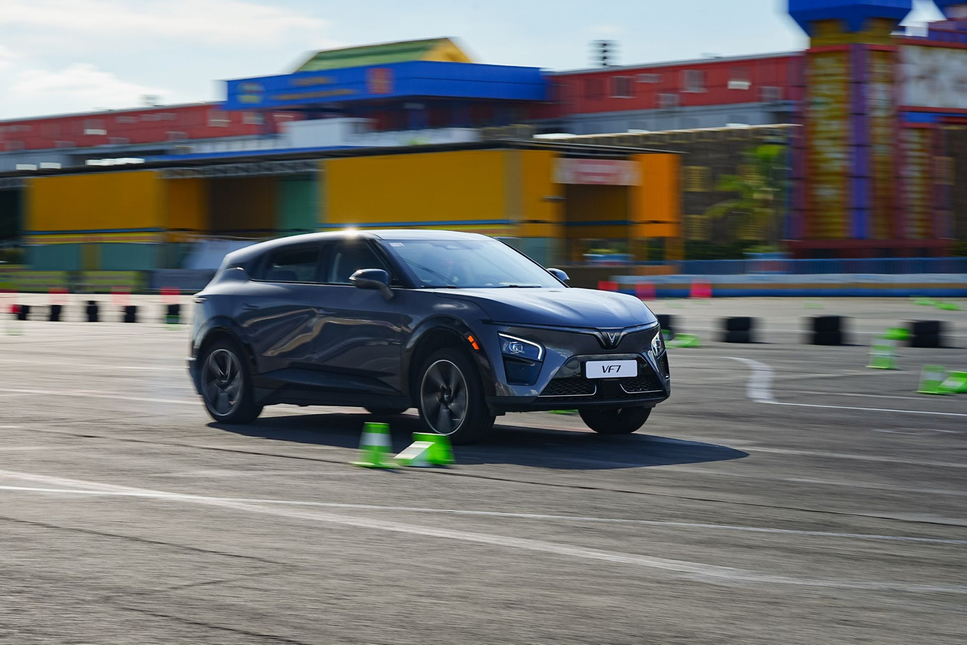 Sở hữu thiết kế thể thao cùng khả năng vận hành vượt trội so với tầm giá, không khó hiểu vì sao VinFast VF 7 là tâm điểm khi nhận được rất nhiều lượt đăng ký lái thử từ phía khách hàng. Riêng với mẫu xe này, khách hàng có thể tham gia bài thử Gymkhana phức tạp với nhiều khu cua, tăng tốc tổng hợp để trải nghiệm trọn vẹn khả năng vận hành của xe.