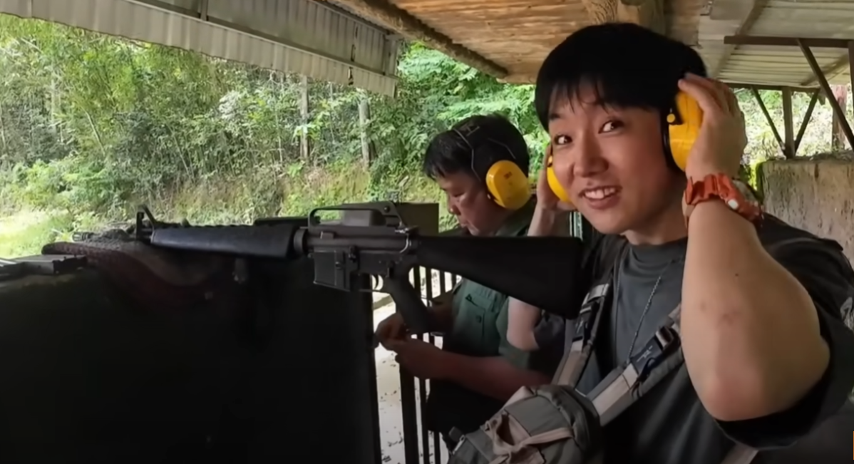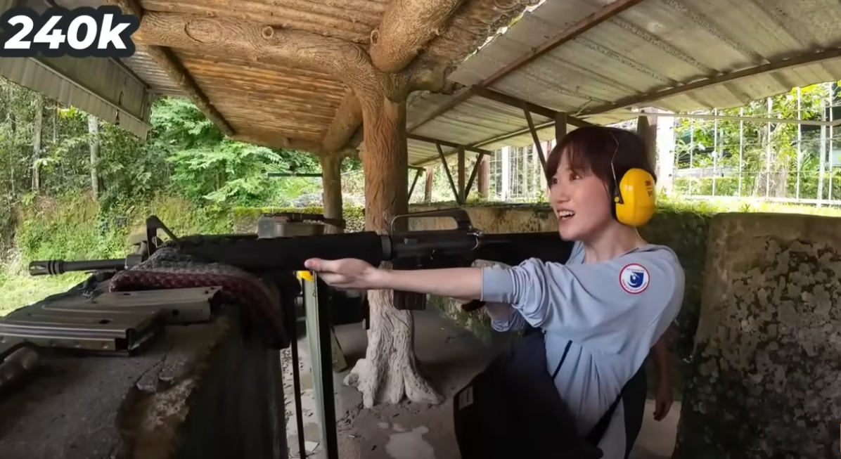 Cũng tại đây, Kiki và hai người bạn của mình lần đầu được thử bắn súng đạn thật. Giá vé vào khu vực và trải nghiệm bắn súng là 60.000 đồng/lượt bắn (phải mua ít nhất 10 lượt bắn). Kiki mạnh dạn chi 1.2 triệu đồng để hai người bạn có thể thỏa sức trải nghiệm bắn súng. Mặc dù âm thanh phát ra từ tiếng súng bắn rất to khiến Ayumi có chút lo sợ song cả ba đều hào hứng với hoạt động này.