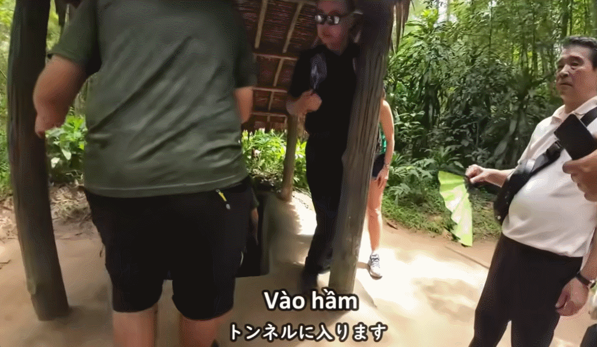 Tới địa đạo Củ Chi, sau khi lắng nghe hướng dẫn viên giải thích và xem video giới thiệu về khu di tích lịch sử này, Kiki, Ayumi và Fumi tỏ ra rất hào hứng. Trong đó, nam du khách Fumi cảm thấy vô cùng thích thú khi được thử “chui vào lòng đất” qua lối đi nhỏ xíu như cách mà dân quân Củ Chi từng sinh hoạt và chiến đấu trong giai đoạn kháng chiến.