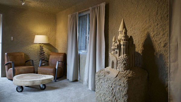 Tòa lâu đài cát này cao 8 m, có đầy đủ tiện nghi, cửa sổ, wifi, điện và nước sinh hoạt.