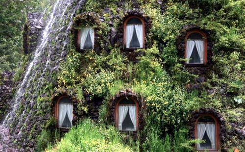 Khách sạn được thiết kế theo hướng thân thiện với môi trường, chủ yếu sử dụng gỗ của khu dân cư xung quanh. Từ sáng tới tối nước mát tinh khiết từ trên đỉnh bắn tung tóe trên cửa sổ phòng khách sạn làm mát không gian bên trong.