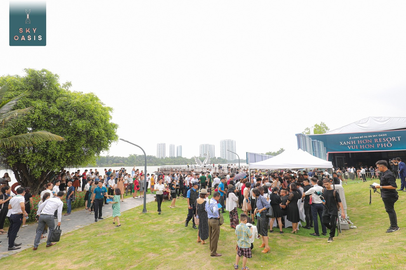 Sức nóng trong khu đô thị lên tới đỉnh điểm vào lúc 10h sáng, khi nhà mẫu Sky Oasis chính thức mở cửa. Tại thời điểm này, gần 2,000 khách xếp thành một hàng dài cả cây số trước sảnh bán hàng.
