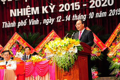 Phát biểu chỉ đạo Đại hội, Phó Thủ tướng Nguyễn Xuân Phúc biểu dương những thành tựu quan trọng mà Đảng bộ và nhân dân Nghệ An đã đạt được trong nhiệm kỳ vừa qua; đồng thời chỉ rõ những tồn tại, hạn chế và gợi ý các giải pháp khắc phục để thúc đẩy quá trình phát triển KT-XH của Nghệ An, sớm đưa tỉnh nhà trở thành trung tâm của vùng Bắc Trung Bộ, trở thành tỉnh khá của khu vực phía Bắc theo tinh thần Nghị quyết 26 NQ/TW của Bộ Chính trị.