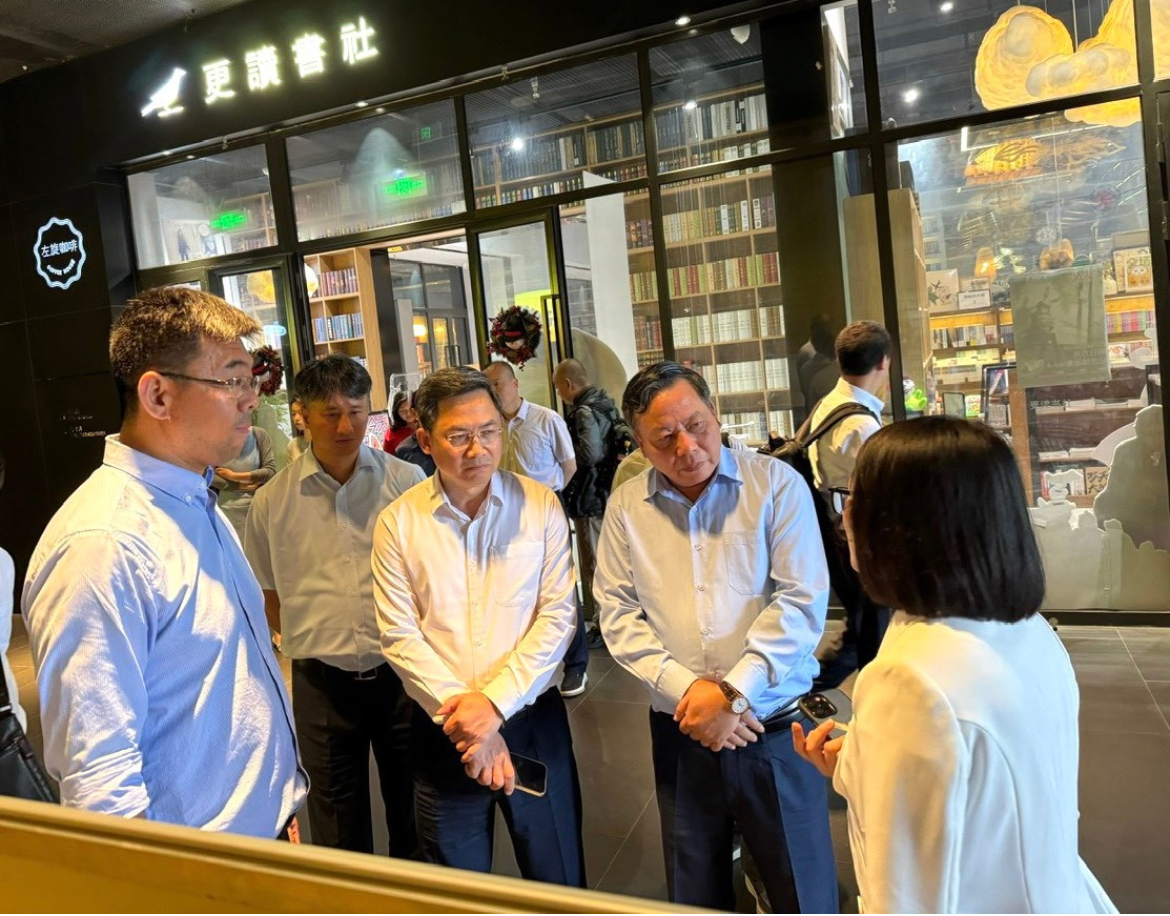 Buổi sáng cùng ngày, Đoàn đã đi khảo sát, trao đổi kinh nghiệm về phát triển công nghiệp văn hoá, đổi mới sáng tạo tại Long Phúc Tự, thuộc quận Đông Thành. Đoàn đã được giới thiệu, tìm hiểu một số mô hình phát triển công nghiệp văn hoá, thiết kế sáng tạo mà quận Đông Thành đã triển khai trong thời gian qua.