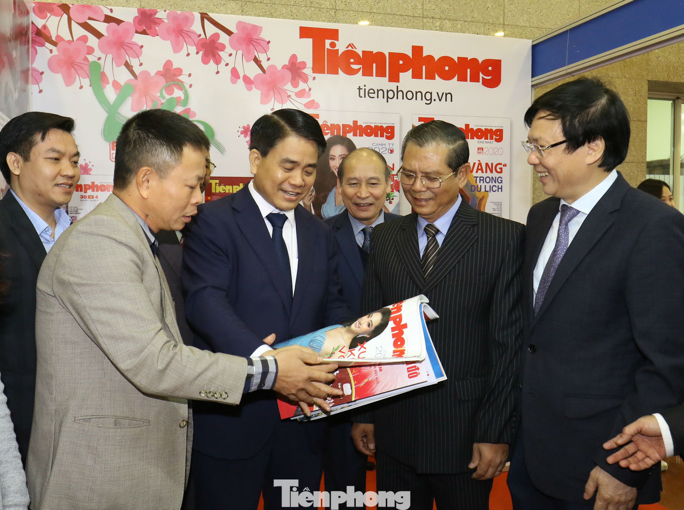 Chủ tịch UBND TP Hà Nội Nguyễn Đức Chung thăm gian hàng báo Tiền Phong