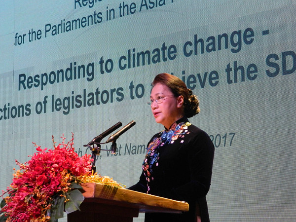 Phát biểu tại phiên khai mạc, Chủ tịch Quốc hội Nguyễn Thị Kim Ngân cho biết Việt Nam cũng như hầu hết các quốc gia trong khu vực Châu Á – Thái Bình Dương, đặc biệt là những quốc gia ven biển, quốc đảo nhỏ là những nước bị ảnh hưởng nghiêm trọng của biến đổi khí hậu (BĐKH).
