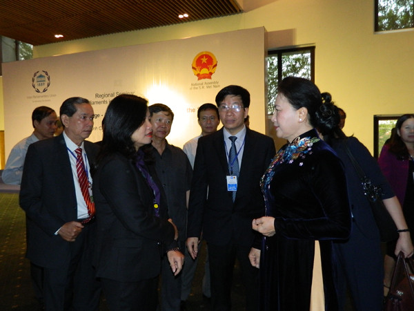 Chủ tịch Quốc Hội Nguyễn Thị Kim Ngân, Chủ tịch IPU Saber Chowdhury, các phó Chủ tịch Quốc hội Tòng Thị Phóng, Đại tướng Đỗ Bá Tỵ, Bí thư Thành uỷ TP. HCM Nguyễn Thiện Nhân, Tổng Thư ký IPU Martin Chungong, Chủ tịch Thượng viện kiêm Chủ tịch Quốc hội Myanmar Mahn Win Khaing Than; Chủ tịch Hạ nghị viện Philippinesn Alvarez Pantelon; Chủ tịch Quốc hội Timor Leste Aderito Hugo Da Costa; Tổng Thư ký Hội đồng Liên minh nghị viện Hiệp hội các nước Đông Nam Á (AIPA) Isra Sunthornvut, và hơn 200 đại biểu đến từ Quốc hội của 24 nước trong khu vực châu Á- Thái Bình Dương cùng đại diện của các tổ chức quốc tế tham dự hội nghị.