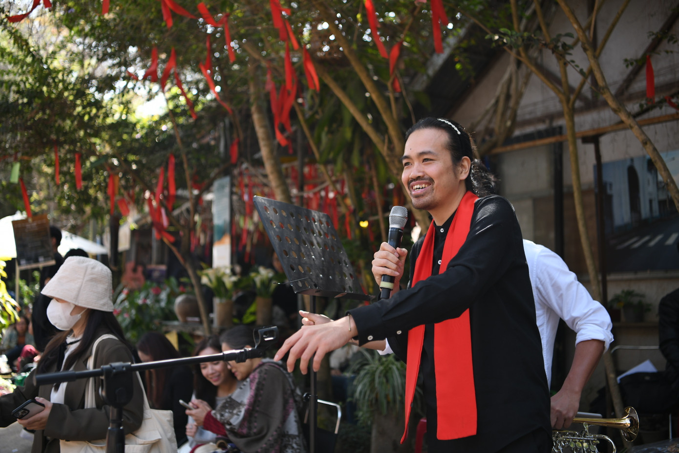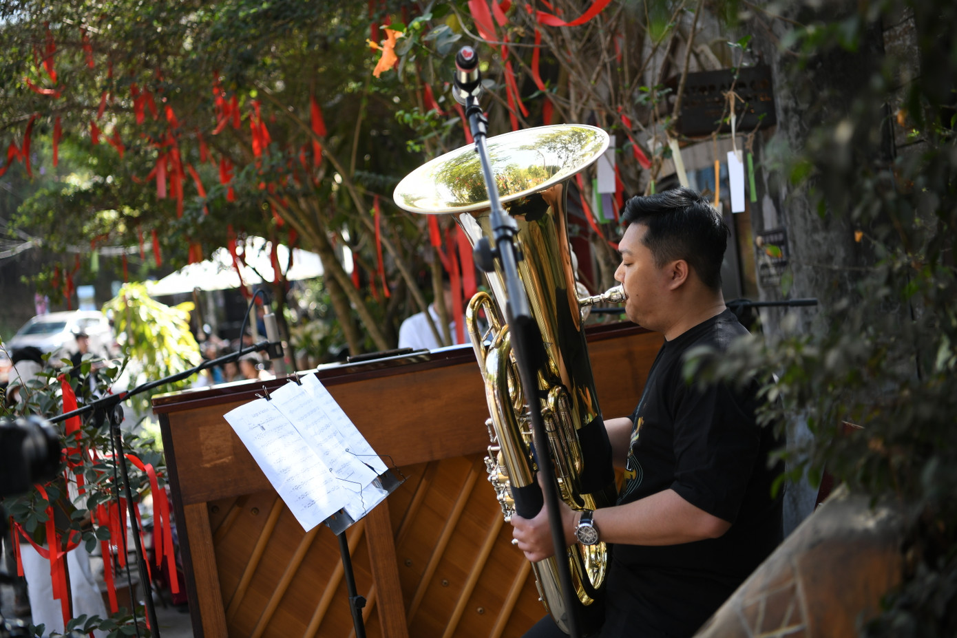 | Biểu diễn kèn trumpet tại cung đường nghệ thuật Lý Tự Trọng. |