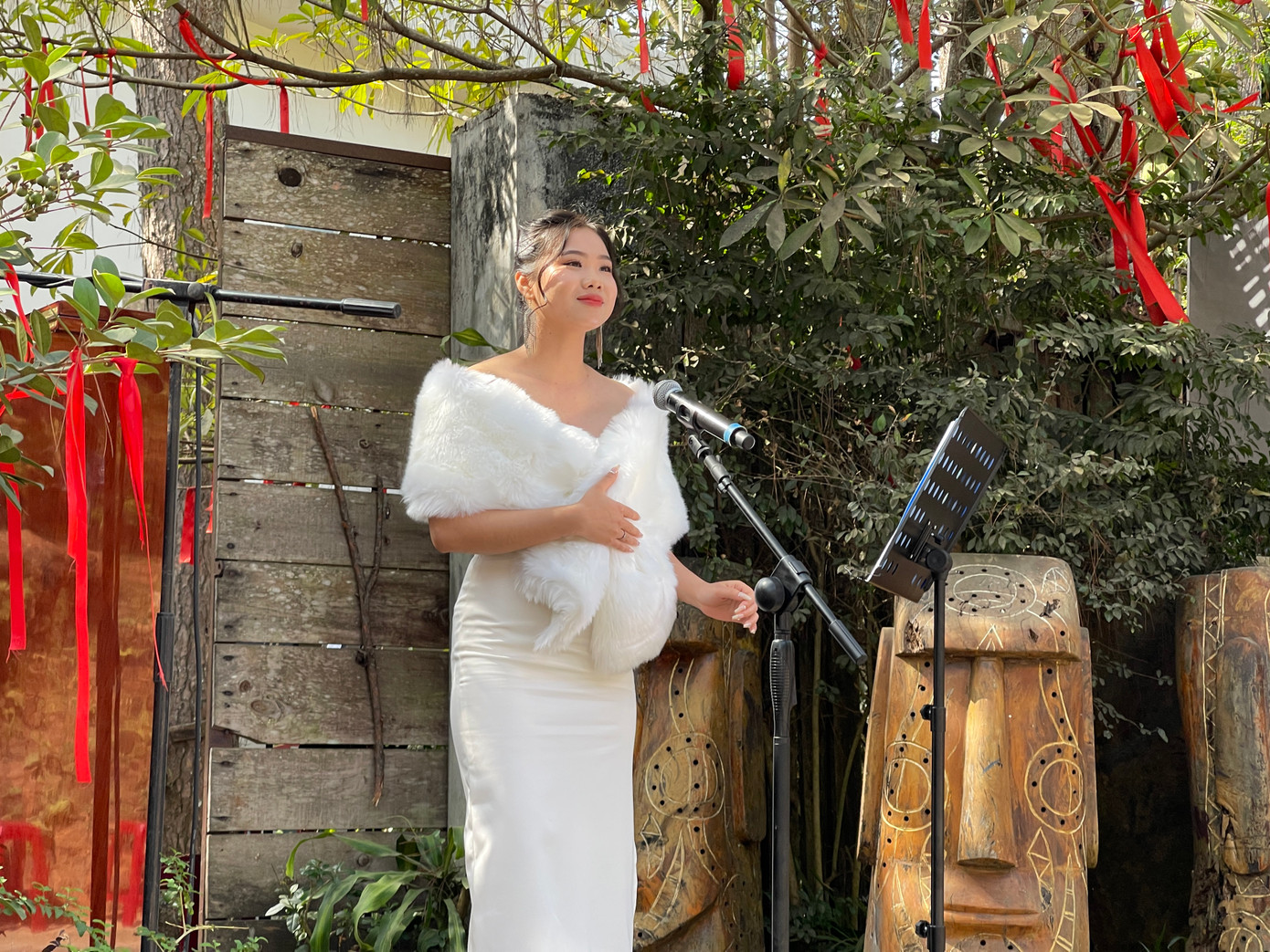 Nghệ sĩ Bảo Quyên cảm ơn ban tổ chức đã chọn khu biệt thự cổ Ana Mandara Villas Dalat ẩn hiện giữa đồi thông làm nơi diễn ra cuộc “đối thoại” giữa tranh của cố họa sĩ Nguyễn Tư Nghiêm và âm nhạc cổ điển. Hiếm có nơi nào thơ mộng và gợi cảm hứng cho nghệ thuật đến thế.