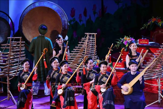 | Chương trình biểu diễn nghệ thuật chào mừng tại phiên khai mạc Đại hội. Ảnh: TTXVN |
