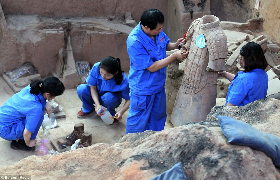 Theo Dailymail (Anh), 120 bức tượng chiến binh làm bằng đất nung đã được khai quật. Được biết, năm 1974 và năm 1985, các cuộc tìm kiếm, khai quật cũng được tiến hành song chưa có kết quả.