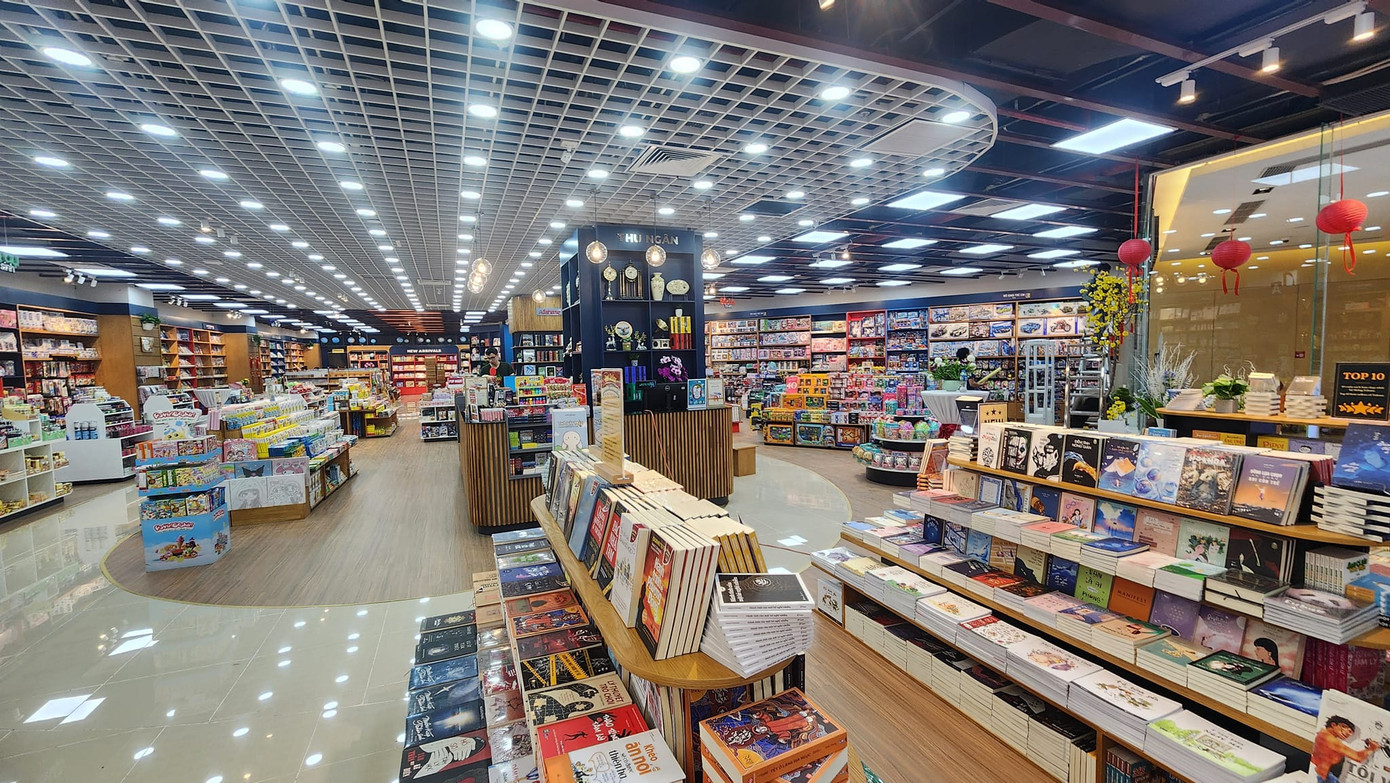 Nhà sách sở hữu không gian mua sắm sang trọng, hiện đại, diện tích rộng hơn 800m², với hàng ngàn mặt hàng sách quốc văn, ngoại văn, văn phòng phẩm, dụng cụ học tập, đồ chơi, lưu niệm các loại… phong phú và đa dạng.