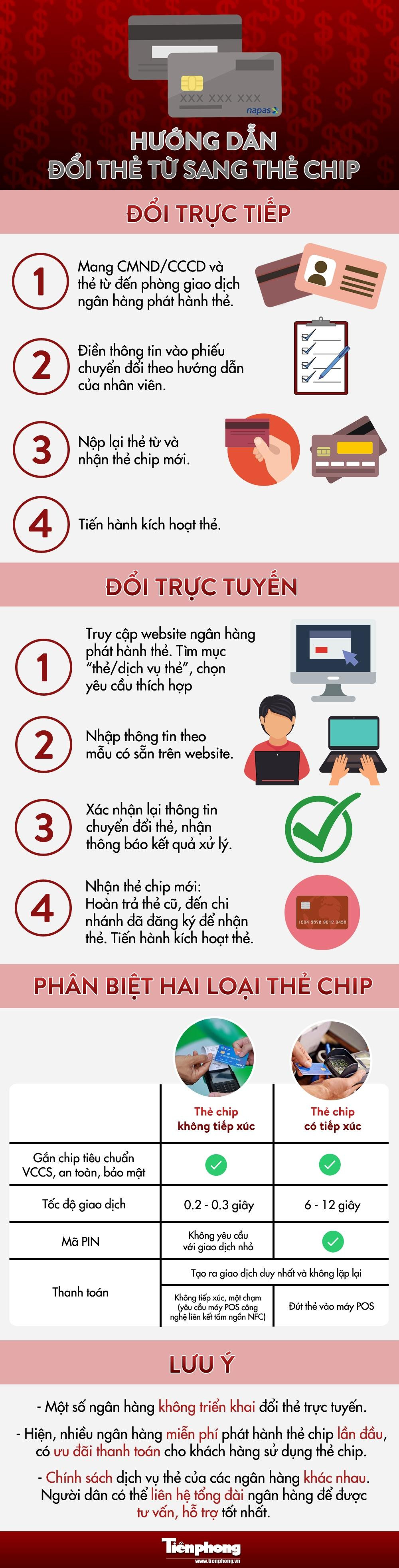 TPO - Từ ngày 31/3, theo quy định của Ngân hàng Nhà nước, thẻ ATM phát hành mới phải là thẻ chip, thay thế cho mẫu thẻ từ trước đó. Với thẻ từ đang lưu hành, người dân có thể thực hiện chuyển đổi tại phòng giao dịch hoặc website ngân hàng phát hành thẻ.