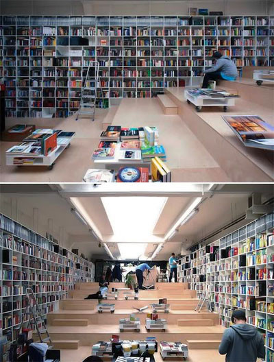 Hiệu sách Livraria da Vila, Sao Paulo, Brazil, với thiết kế đặc biệt khi cửa ra vào cũng chính là các giá sách.
