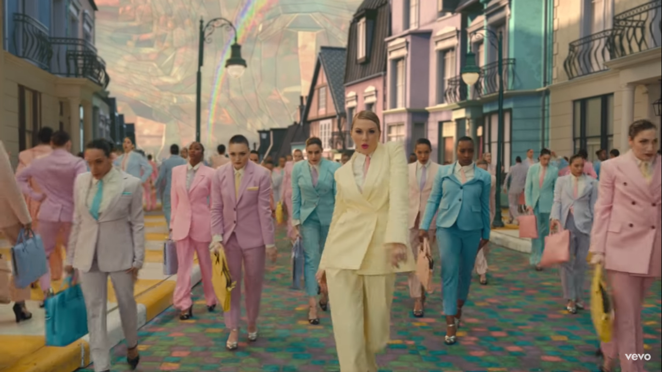 Pastel được lựa chọn trong cảnh quay "ME!" của Taylor Swift, tạo cảm giác tươi mới phù hợp với nội dung và thông điệp mà ca sĩ muốn truyền tải (Ảnh chụp màn hình)