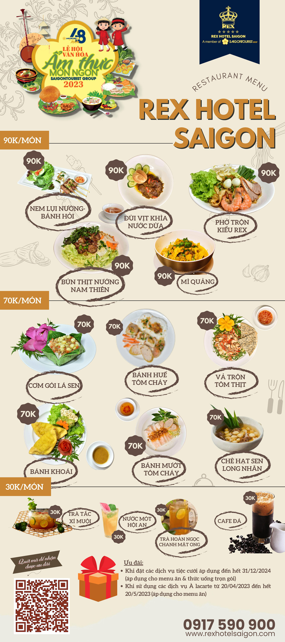 · Ưu đãi khi chọn món ăn theo thực đơn À la carte tại khách sạn Rex Sài Gòn đến hết ngày 20/05/2023.