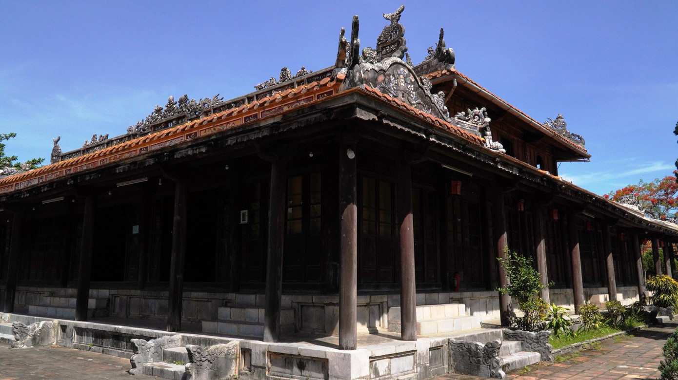 | Kiến trúc bên ngoài cùng kết cấu tinh xảo bên trong tòa nhà Quốc Tử giám ở Huế. |