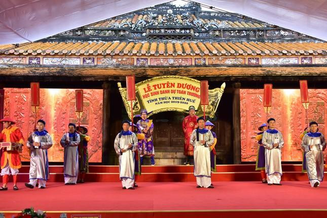 | UBND tỉnh TT-Huế giao Sở GD-ĐT phối hợp Trung tâm Bảo tồn Di tích Cố đô Huế, Sở VH-TT tỉnh… có kế hoạch xây dựng “lễ đường giáo dục” tại di tích Quốc Tử giám; tạo thành nơi trang nghiêm để tổ chức các hoạt động khai giảng, trao học bổng, phát văn bằng… Ngoài ra, nơi đây cũng sẽ được kết hợp nhiều hoạt động trưng bày, quảng diễn phù hợp, đặc biệt là những chuyên đề độc đáo gắn liền với văn hóa cung đình; tổ chức nhiều hoạt động phụ trợ, biến không gian di tích thành một khu phức hợp bảo tàng - dịch vụ... (Trong ảnh là lễ tuyên dương “Học sinh danh dự toàn trường” lần đầu tiên tại TT-Huế). |