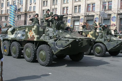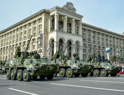 Việc Ukraine phô diễn hàng loạt các loại xe tăng, thiết giáp, pháo tại Kiev và nhiều thành phố khác được coi như là thông điệp mang tính răn đe gửi tới Nga và lực lượng ly khai miền đông.