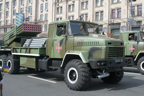 Ở thành phố Vinnitsa - miền trung Ukraine thì có các loại xe tải đặc chủng Zil-131, xe trinh sát chiến trường BRDM-2DI, pháo phản lực phóng loạt Bastion-1.