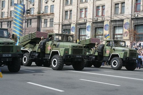 Ngoài các mẫu xe bọc thép, trong buổi duyệt binh còn có sự xuất hiện của biến thể mới nhất hệ thống pháo phản lực phóng loạt BM-21 Grad do Ukraine phát triển với hai phiên bản là "Bastion-1" và "Bastion-2".
