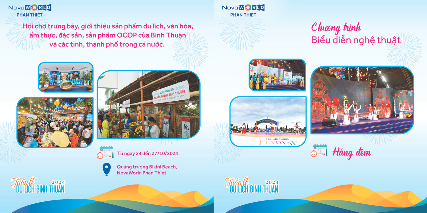 | “Tuần lễ Du lịch Bình Thuận 2024” sẽ diễn ra tại quảng trường Bikini Beach, NovaWorld Phan Thiet từ 24 - 27/10 |