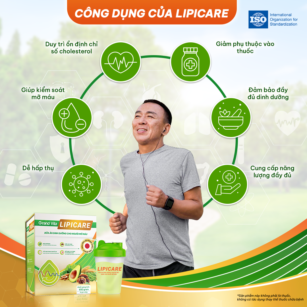 ● Phù hợp với chế độ ăn uống lành mạnh: Lipicare không chỉ ổn định chỉ số mỡ máu mà còn cung cấp một giải pháp dinh dưỡng tối ưu, giúp người dùng duy trì sức khỏe tim mạch và năng lượng dài lâu.