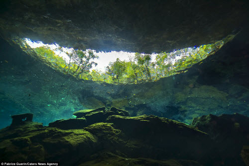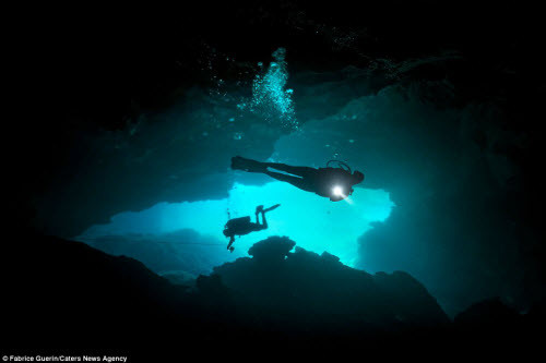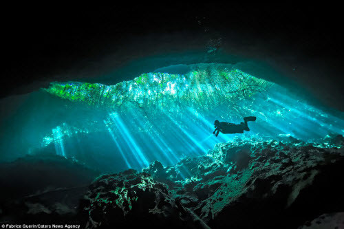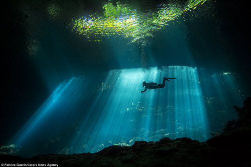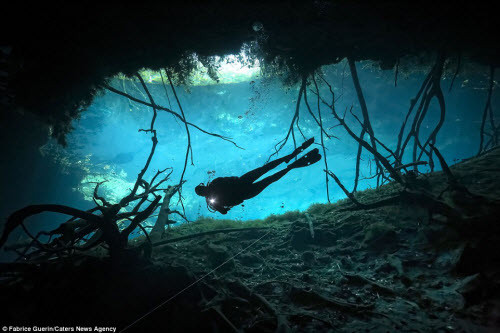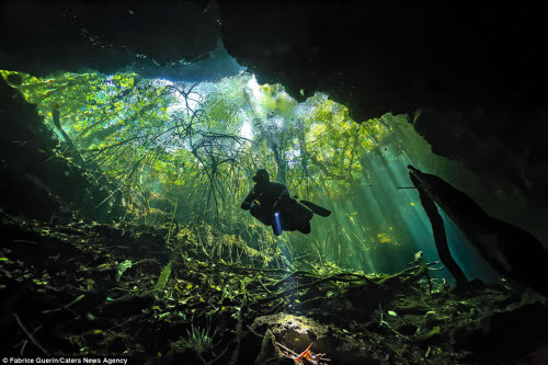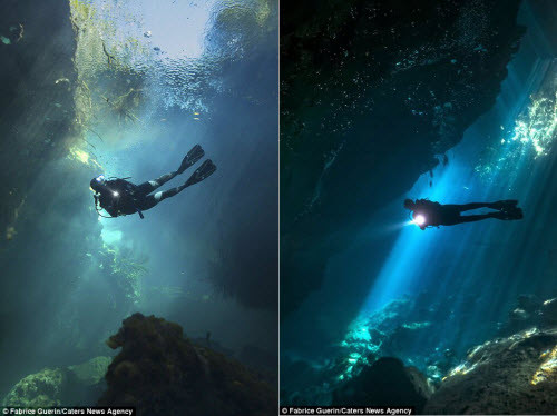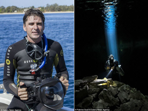 Nhiếp ảnh gia Guerin đã sử dụng máy ảnh chuyên dụng để ghi lại những hình ảnh dưới nước trong hố sâu trên bán đảo Yucatan, Mexico.
