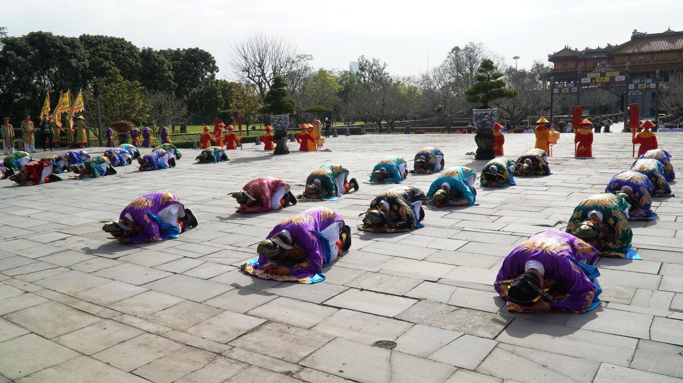 Thời gian trùng tu điện Thái Hòa dự kiến kéo dài đến tháng 8/2025 (trong ảnh là nghi thức khởi công trùng tu).
