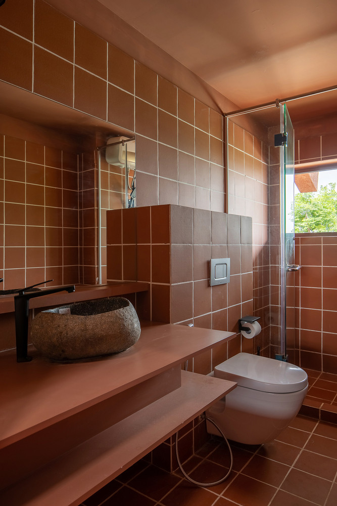 Ngôi nhà được xây mới nhưng tận dụng toàn bộ phần gạch của nhà cũ để tiết kiệm chi phí. Để làm nổi bật bản sắc văn hóa địa phương, toàn bộ ngôi nhà được xây dựng bằng một loại vật liệu duy nhất là gạch men - chất liệu truyền thống của Quảng Nam. Nó tạo ra sự mát mẻ cho tòa nhà, giải phóng nhiệt và giữ cho bề mặt sạch sẽ và khô ráo.