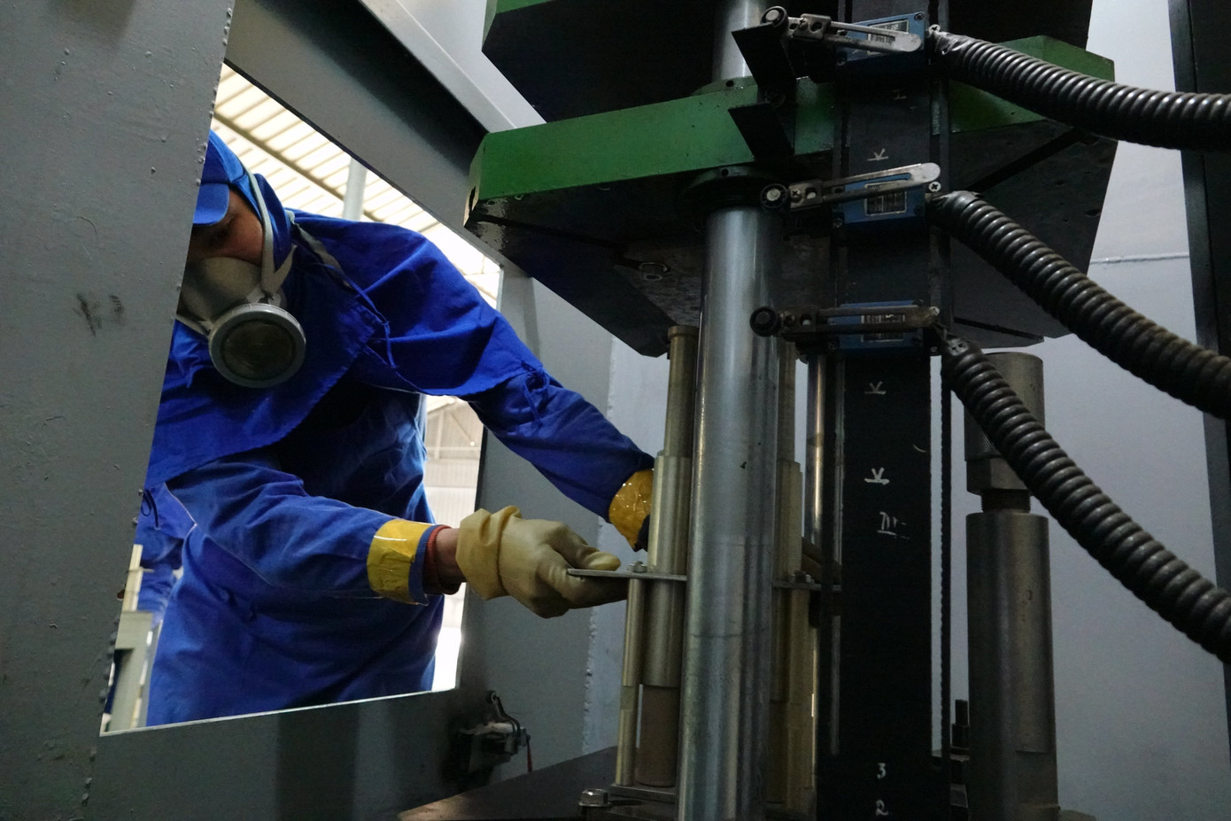 Sau đó, ống pháo được đưa vào máy nén là hoàn tất công đoạn.