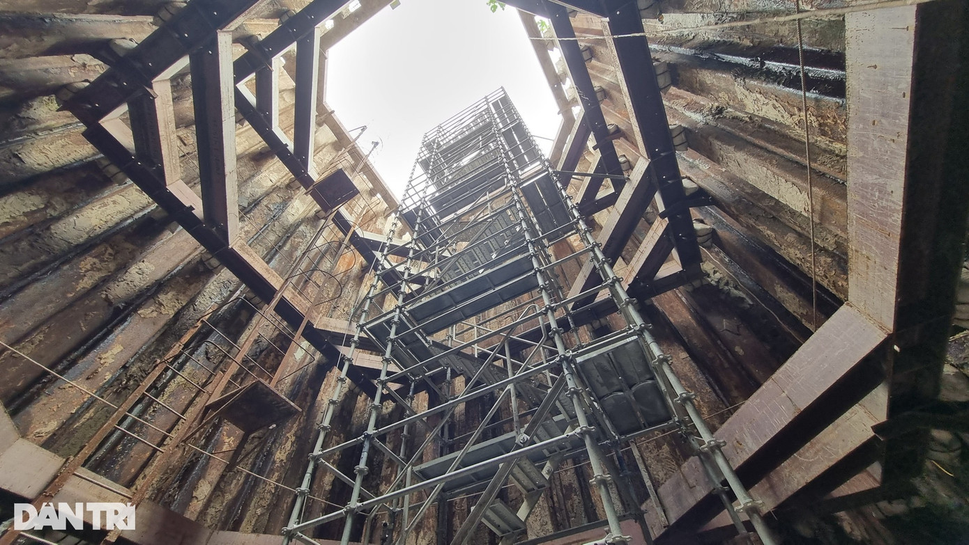 Tại vị trí giếng ngầm, đơn vị cũng đã thiết kế đường lên xuống cống, phục vụ quá trình thi công. Ông Chong đánh giá thi công giếng là hạng mục khó nhất của gói thầu này, do quá trình triển khai, nhà thầu phải tiến hành di dời nhiều công trình tiện ích trên mặt đất như đường ống cấp nước, cống thoát nước, cáp viễn thông, dây điện...