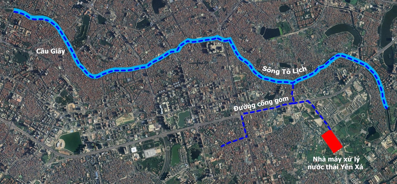 Nước thải sau khi đi qua hệ thống cống gom, sẽ theo đường dẫn về Nhà máy xử lý nước thải Yên Xá. Việc thi công nhà máy này (gói thầu số 1) đã hoàn thành 96%, chờ kết nối đồng bộ với gói thầu số 2 và số 4 (xây dựng hệ thống cống cho một phần khu vực Hà Đông và khu đô thị mới) để vận hành thử trong năm nay.