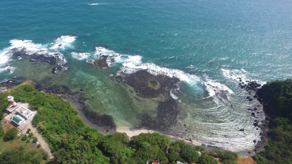 Dấu tích núi lửa từ hàng triệu năm về trước - Ảnh Nguyễn Ngọc Vào những dịp Tết hay dịp nghỉ lễ, lượng du khách đổ về đây khá đông, đa phần là những bạn trẻ. Họ ưa trải nghiệm, thích chinh phục bằng việc đi bộ hơn 80 bậc cầu thang để lên tới đỉnh ngọn hải đăng. Tại đây, có thể phóng tầm mắt ra xa, nhìn bao quát cả những vị trí đẹp nhất của Ba Làng An, ngắm trời cao, biển rộng, sóng vỗ rì rào, ngắm núi nham thạch trải dài thoai thoải theo bờ biển, ngắm đảo Lý Sơn ẩn hiện giữa mây trời… và không quên chụp cho mình những bức ảnh lưu niệm đẹp nhất để về khoe với người thân, gia đình, bạn bè.