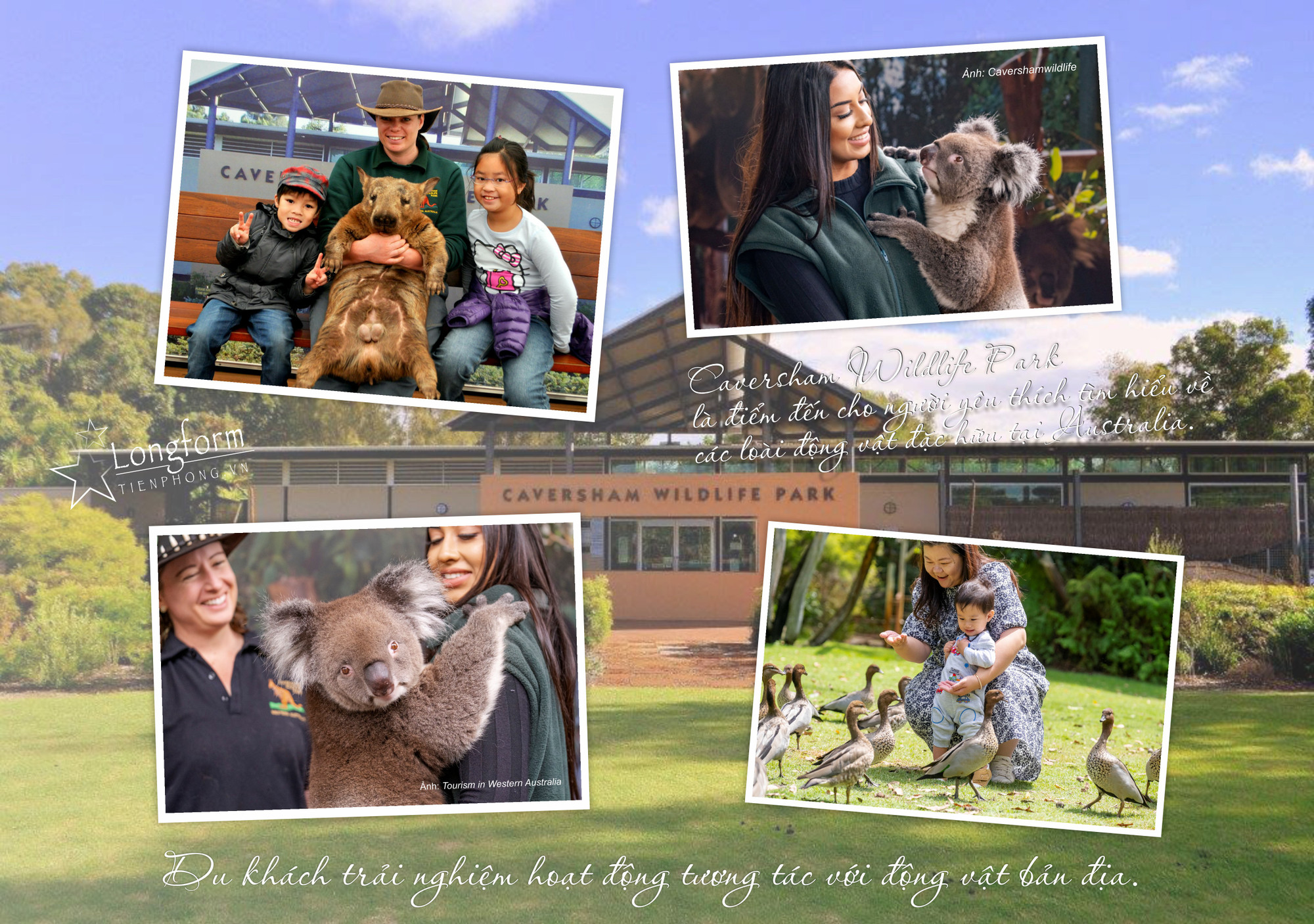 Đến đây, du khách có cơ hội tiếp xúc gần gũi với nhiều loài động vật đặc trưng của Australia. Hoạt động được nhiều người yêu thích là chụp ảnh cùng gấu koala, cho kangaroo ăn... Công viên còn là nơi sinh sống của nhiều loài chim, bò sát và động vật có vú, mang đến hành trình khám phá đa trải nghiệm cho khách tham quan.