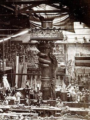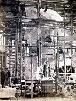 Các phần của bức tượng được chế tác tại Pháp do công ty Gustave Eiffel đảm nhiệm. Chúng được chia ra thành 350 mảnh để chuyển tới cảng New York trên một con tàu của Pháp vào năm 1885. Công tác xây dựng và lắp ghép được hoàn thành một năm sau đó. Ảnh: AP