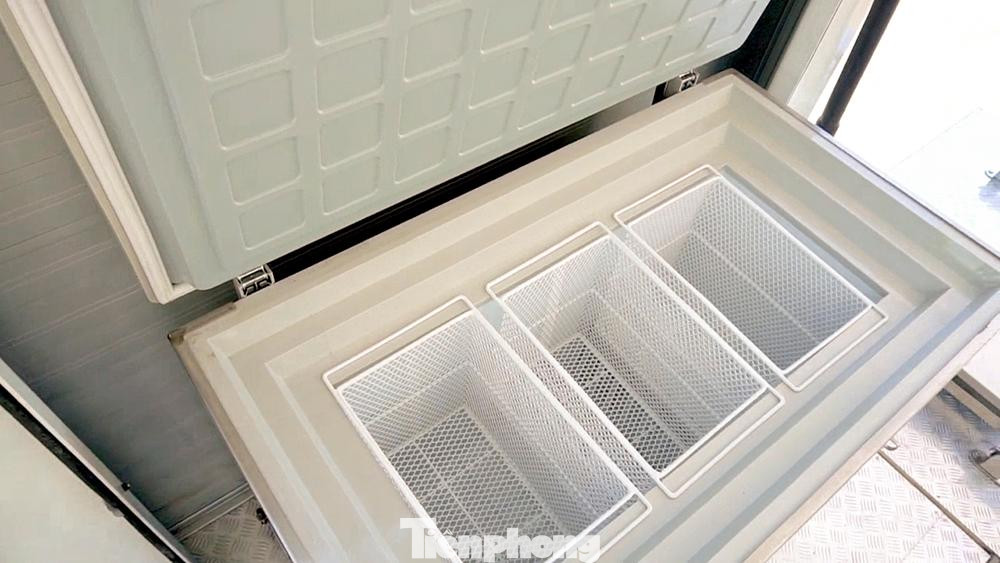 Tủ lạnh trên xe đúng chuẩn bảo quản vắc xin khi mang ra môi trường ngoài. Chiếc tủ lạnh này sạc pin khoảng 10 tiếng, thời gian sử dụng là 30 tiếng nên khá tiện cho việc bảo quản vắc xin.