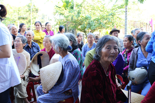 Người dân trong xã chờ để được khám bệnh - Ảnh B.N