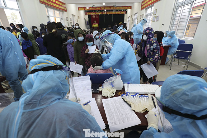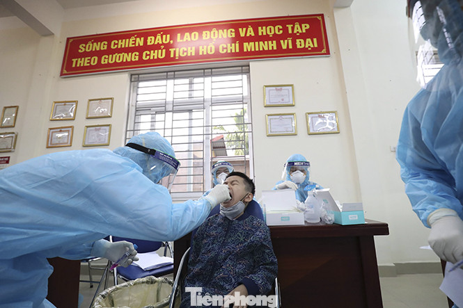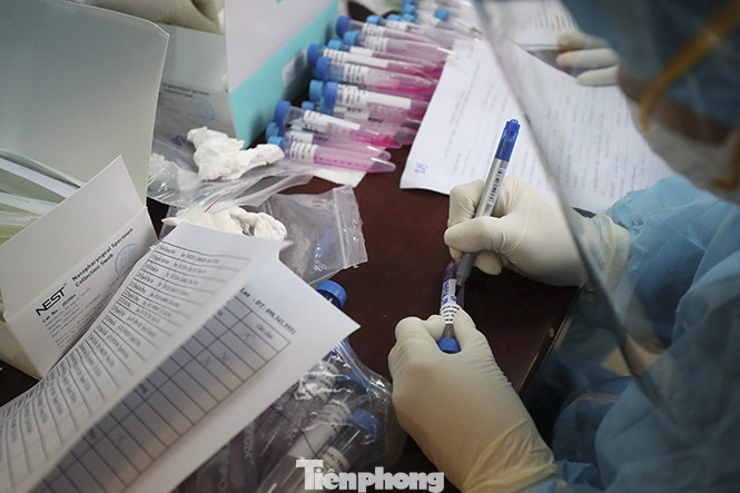 Để có thể xét nghiệm hết trong 1 buổi, 30 nhân viên y tế được cử đến tiến hành lấy mẫu.