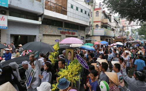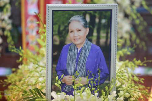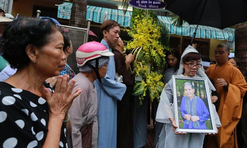 Trước đó, từ sáng sớm, tại chùa Ấn Quang diễn ra các nghi thức phật giáo bên linh cữu của cố nghệ sĩ. Nhìn bức di ảnh của cố nghệ sĩ nhiều người không khỏi bùi ngùi. Đông đảo đồng nghiệp, người thân và khán giả có mặt để thắp hương, tham gia lễ cầu nguyện tiễn đưa nghệ sĩ lần cuối.