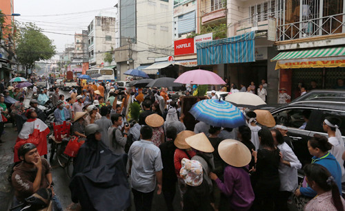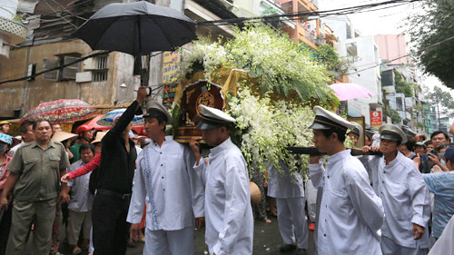 Dòng người chen chân đi sau linh cữu cố nghệ sĩ để cùng tiễn bà về đài hóa thân ở Bình Hưng Hòa.