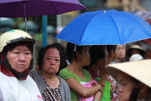 Trước đó, từ sáng sớm, hàng trăm khán giả đứng chen cứng phía ngoài cổng chùa. Dưới cơn mưa, nhiều người che dù, mặc áo mưa để chờ hòa vào dòng người đưa tang. Sinh thời, tiếng hát của Út Bạch vang đến những ngóc ngách của mọi miền quê, in đậm một thời vàng son của cải lương, vọng cổ.