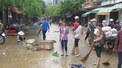 Tại “rốn lũ” khu vực Giếng Vuông (phường Hoàng Văn Thụ), nước vẫn còn ngập úng ở trung tâm chợ. Các hộ tiểu thương tìm mọi cách bơm thoát nước ra ngoài, tìm kiếm những tài sản chưa bị hư hỏng nặng. Nơi nước đã rút; các đoàn viên, thanh niên trên địa bàn quýet dọn đường phố, thu gom rác thải.